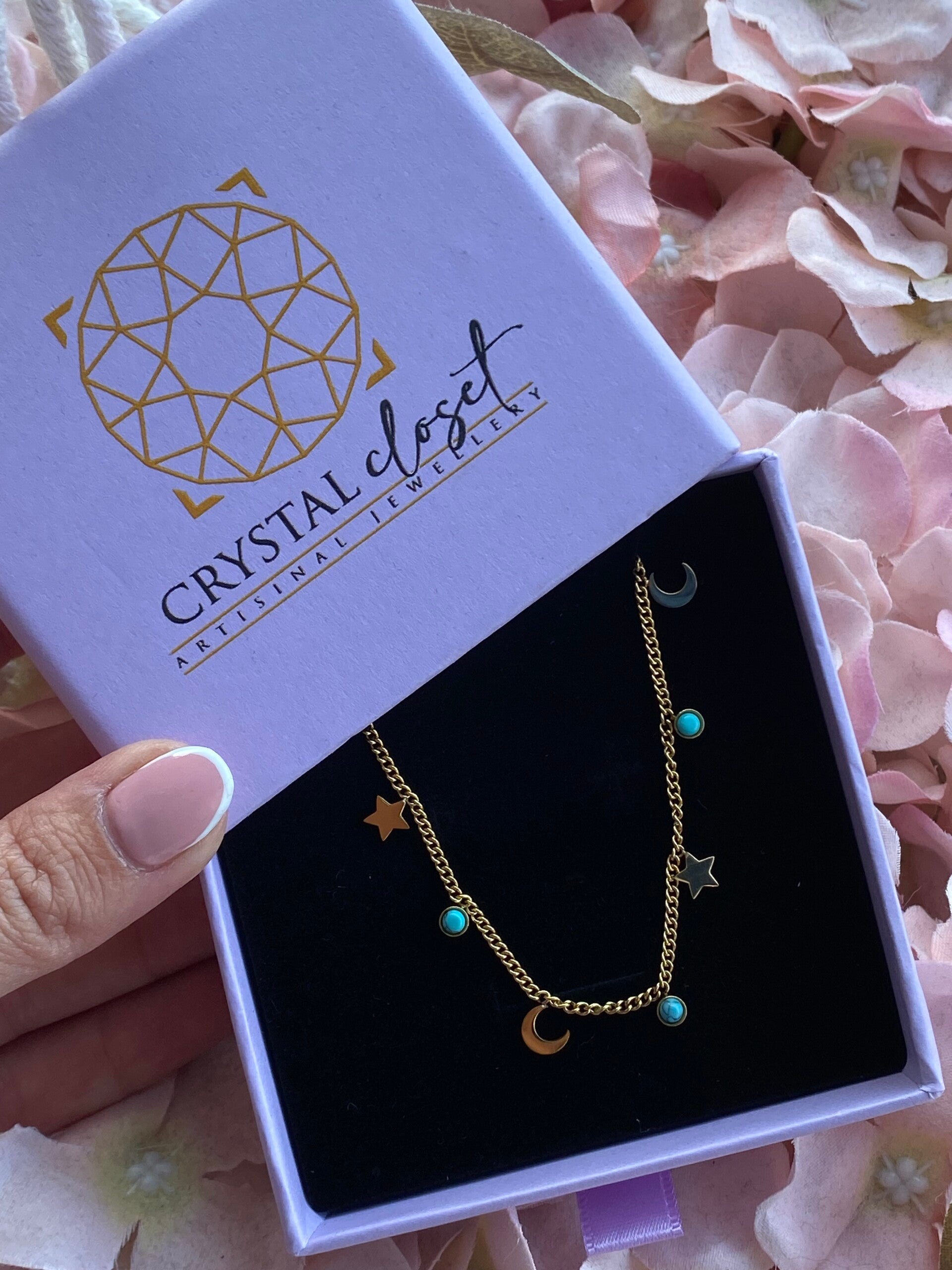 Material: 304 stainless steel, Rhinestone, Turquoise