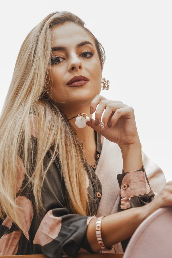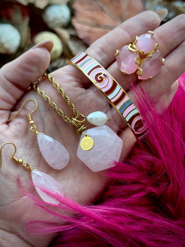 1 Rose Quartz hexagram crystal with 18kt gold plated necklace